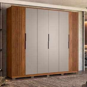 Guarda Roupa Casal Ripado Atrice 6 Portas Nogueira Nude Prime TX com Pés Demóbile – Demartêz