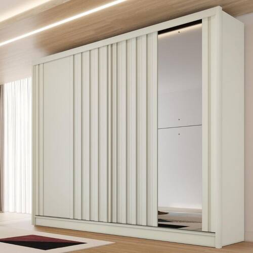 Características: Estrutura em MDF Acabamento em Pintura UV 2 Portas de correr sendo 1 com espelho 4 Gavetas Corrediças telescópicas Ripado Puxador embutido