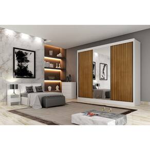 Guarda Roupa Casal Ripado com Espelho 3 Portas 6 Gavetas - Canastra-Branco - Móveis Novo Horizonte