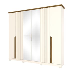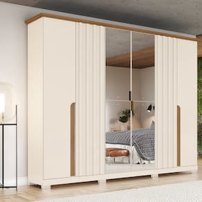 Guarda Roupa Casal Ripado com Espelho 6 Portas com Pés Napoli Henn. O Roupeiro Napoli 6 Portas é sinônimo de modernidade, elegância e praticidade no dia a dia, apresenta um design moderno e harmônico. produzido em MDP. Conta com 6 gavetas com corrediças telescópicas, Gavetas com usinagem para pega, 02 portas com apliques ripados, Portas com usinagem para pega, Cabideiro e calceiro em alumínio, Puxadores em alumínio com acabamento bronze, Pés em ABS e Frente das gavetas, tampo sobre as gavetas e ripas laterais na tonalidade da caixa. É ideal para agregar bom gosto ao ambiente e organização a sua rotina!