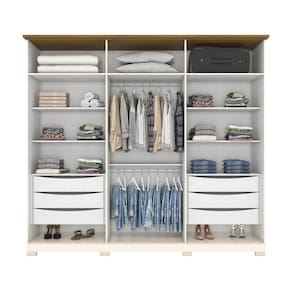 Características: Pintura UV Texturizada Material do Fundo: MDF Possui Maleiro: Sim 6 Portas Tipo Porta: Bater Material da Porta: MDP Tipo de Dobradiça: Metálica Material do Puxador Porta: Alumínio 6 Gavetas Material da Gaveta: MDF/MDP Material da Corrediça: Telescópica Material do Puxador Gaveta: Usinagem para pega Peso Máximo por Gaveta: 3 Kg 5 Prateleiras Material da Prateleira: MDP Peso Máximo por Prateleira: 8 Kg 8 Pés Material dos Pés: ABS Altura Pés/Rodapés: 5 Cm Possui Espelho: Sim Medida do Espelho: 105 x 39 x 0,3 cm Produto Suporta até -Kg-: 75 Kg Material Principal: MDP Informações Complementares: Portas com usinagem para pega; Cabideiro e calceiro em alumínio