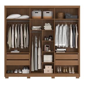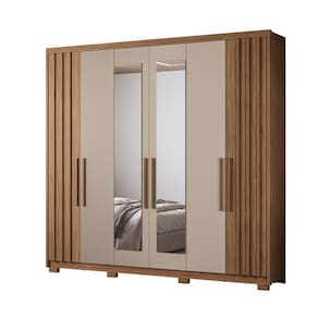 Características: 3 Cabideiros em alumínio 4 Gavetas com corrediças telescópicas 4 Nichos 6 Portas sendo duas com detalhe ripado 4 Prateleiras Estrutura em MDP Moldura laterais em 25 mm Possui espelhos e pés Puxadores em MDF