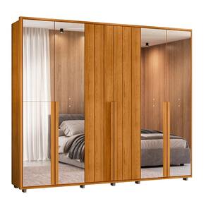 Características: 8 Espelhos 1159x410mm 6 Gavetas com corrediças telescópicas 6 Nichos 6 Portas 4 Sapateiras deslizantes com corrediças telescópicas Cabideiros retrateis em alumínio com pistão a gás Dobradiças de 35mm com sistema de amortecimento Estrutura 100 MDF 15mm e 25mm Fixação com minifix e parafusos Puxadores em MDF Pés em poliestireno Peso total suportado 114kg