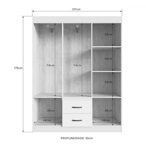 - Acompanha: Guarda-Roupa + Kit Ferragens + Manual de Montagem