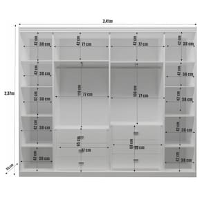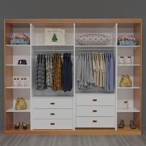 O Guarda-roupa Rivoli Conta com 6 portas de bater com puxadores sofisticados, 6 gavetas com corrediças telescópicas e feito 100% com MDF. Conta com colunas laterais de 25 mm, gavetas espaçosas, e excelente divisão com prateleiras, ótima combinação para organização.