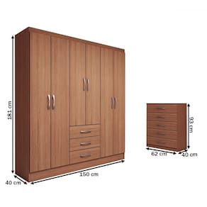 O(a) Guarda-Roupa Casal Rose 6 Portas 3 Gavetas com Cômoda 5 Gavetas Cinamomo - Loja é produzido em MDP na escala de brilho Fosco, e possui um grau de dificuldade de montagem: Médio.