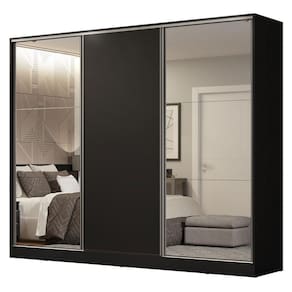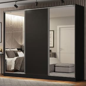 - 3 portas de correr, apresentando sistema anti-descarrilhamento, sendo uma (1) de madeira e duas (2) com espelhos