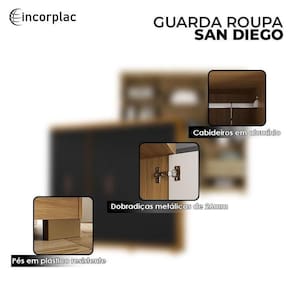 Guarda Roupa Casal San Diego Carvalho Americano Preto - Incorplac