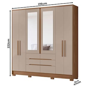 Guarda Roupa Casal San Francisco 6 Portas Carvalho Fendi com Espelho - Moval