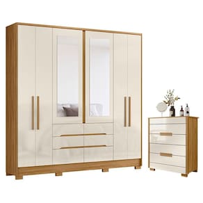 Guarda Roupa Casal San Francisco 6 Portas Freijó Off White com Espelho - Moval