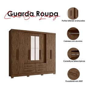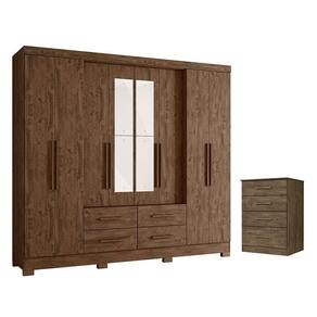 Guarda Roupa Casal San Lorenzo com Espelho e Cômoda MS913 Castanho Wood – Moval