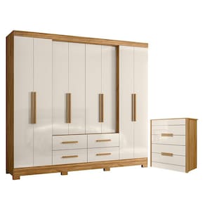 Guarda Roupa Casal San Lorenzo e Cômoda Dhara Freijó Off White – Moval