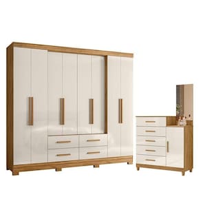 Guarda Roupa Casal San Lorenzo e Cômoda Lisboa Freijó Off White Moval