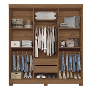 Além de sua excelente distribuição interna, o guarda-roupa conta com 2 gavetas espaçosas equipadas com corrediças telescópicas, proporcionando maior comodidade ao abrir e fechar. Os puxadores em MDF revestido oferecem resistência e um visual moderno, complementando o estilo do móvel. O guarda-roupa também acompanha pés, o que facilita a limpeza e dá um toque de leveza à peça. Fabricado com base em processos sustentáveis, o produto respeita normas ambientais, sendo uma opção inteligente para quem busca qualidade, funcionalidade e respeito ao meio ambiente.
