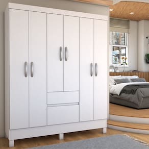 O(a) Guarda-Roupa Casal Senna 6 Portas 2 Gavetas Branco - Loja é produzido em MDP na escala de brilho Brilho e Fosca com Textura, e possui um grau de dificuldade de montagem: Difícil.