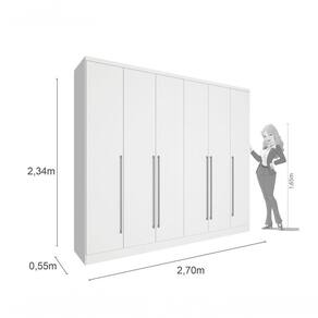 O Guarda Roupa 6 portas Sevilla possui design minimalista, destacando os belos puxadores em alumínio. Produzido em MDP, com espaço ele e ela, oito gavetas com corrediças metálicas, puxadores em alumínio de alto acabamento, oito prateleiras independentes, espaço para roupas longas, maleiro amplo, dobradiças 26mm, espelhos e pés opcionais.
