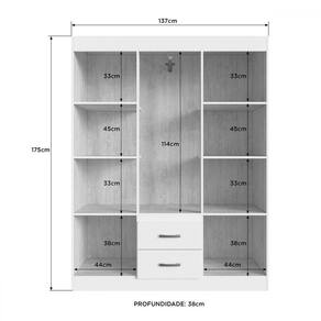 - Acompanha: Guarda-Roupa + Kit Ferragens + Manual de Montagem