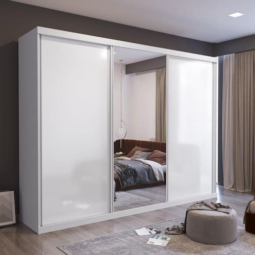 O Guarda Roupa Casal Taylor com Espelho da Bom Pastor é uma peça imponente e funcional que oferece soluções inteligentes para o seu espaço, sendo totalmente produzida em 100% MDF, garantindo durabilidade e resistência.