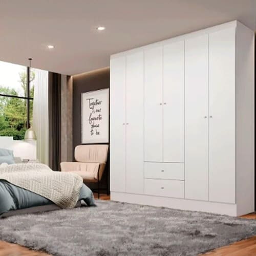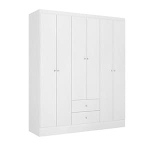 Roupeiro Casal 6 Portas THB Astor, Branco com Rosa, 153 cm