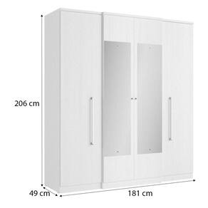 MDP/MDFGuarda-Roupa Casal THB Splendore Glass, 4 Portas de Bater com Espelho, Branco, 181 cm