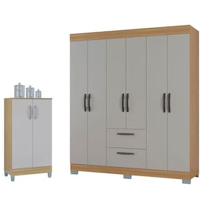 Está montando seu quarto? Apresentamos para você este belo conjunto composto pelo guarda roupa da linha Tóquio com o armário multiuso. O guarda roupa com seis portas conta com um amplo espaço interno para guardar suas roupas e acessórios. Suas duas gavetas com corrediças metálicas, proporciona um deslizamento suave. O armário com seu tamanho compacto possui duas portas, ganhando mais um espaço extra. Assim como o guarda roupa, o armário conta com puxadores e pés em plástico resistente. Fabricados pela Poquema, são desenvolvidos em MDP oferecendo uma combinação perfeita de design, praticidade e durabilidade, sendo uma excelente escolha para quem deseja otimizar seu espaço com estilo e organização. Confira e aproveite!