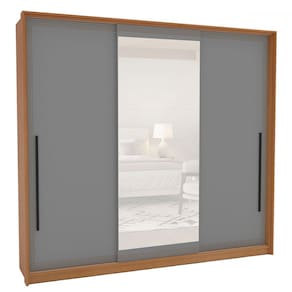 O(a) Guarda-Roupa Casal Valência 3 Portas 4 Gavetas com Espelho Freijó/Cinza - Politorno é produzido em MDF e MDP na escala de brilho Semi-Fosco, e possui um grau de dificuldade de montagem: Médio.