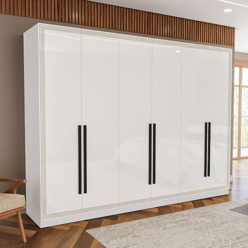 O(a) Guarda-Roupa Casal Valência 6 Portas 4 Gavetas Branco - Politorno é produzido em MDF e MDP na escala de brilho Semi-Fosco, e possui um grau de dificuldade de montagem: Médio.