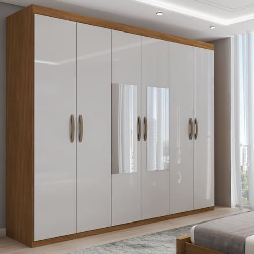 O(a) Guarda-Roupa Casal Vaticano 6 Portas 2 Gavetas com Espelho Marrocos/Off White - Loja é produzido em MDP na escala de brilho Semi-Brilho, e possui um grau de dificuldade de montagem: Médio.