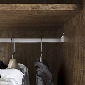 Produzido em MDP com pintura UV fosca, ele apresenta excelente resistência e durabilidade. As gavetas contam com corrediças telescópicas de 300 mm, que proporcionam abertura suave e segura no uso diário. Internamente, o Vitória possui 5 prateleiras — sendo 4 fixas e 1 removível — além de 2 cabideiros de alumínio, distribuindo bem o espaço para roupas dobradas e penduradas.