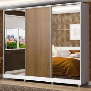 Conta com ótima interna, incluindo quatro gavetas espaçosas e com corrediças metálicas. Ideal para utilização no quarto de casal, o móvel possui abertura com três portas de correr com deslizamento suave, que facilitam a circulação no ambiente.