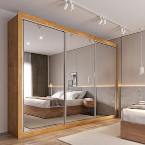O Guarda Roupa Cavich 3 Portas Espelhadas MDF - Móveis Europaeste guarda roupa é perfeito para seu espaço, pois possui excelente espaço interno com 6 gavetas com corrediças telescópicas que permitem maior aproveitamento interno e destas duas gavetas possuem chaves para armazenar com segurança seus pertences. Este modelo conta também com compartimento para malas e roupas de camas, prateleiras fixas e prateleiras removíveis, para poder acomodar roupas longas e ainda compartimento para calçados. Para maior durabilidade possui costas grossas parafusadas, trilho superior e inferior em alumínio. Possui roldanas com molas, nesse sistema a porta não sai do trilho.