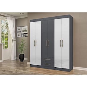 Guarda Roupa Chile Casal com 6 Portas e 2 Gavetas na Cor Niquel/Branco é perfeito para organização e praticidade, além de dar um toque de modernidade para o quarto.