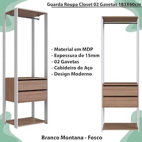 - Modelo: Closet Aberto 02 Gavetas Funcional 183X60cm PRODDY