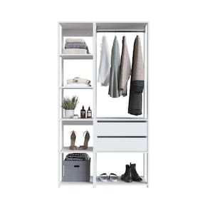 Altura do Conjunto: 183 cm Ambiente: null Ambiente Principal: Quarto Cor: Branco Informação Complementar: 1x Módulo para Closet com Prateleira 183x45x40cm BrancaLargura: 40 cmAltura: 183 cmPeso: 17,6 kgProfundidade: 45 cmNecessita Montagem: Sim1x Módulo para Closet com Gavetas e Cabideiro 183x45x60cm BrancoLargura: 60 cmAltura: 183 cmPeso: 25,3 kgProfundidade: 45 cmNecessita Montagem: Sim Material Principal: MDP Possui Portas: Não Marca: Prodecor