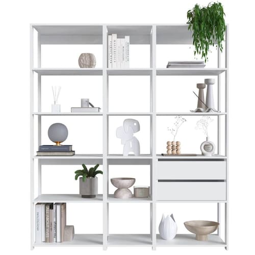 O conjunto closet KIT405090 é produzido em MDP 15mm, acabamento em FF fosco. A estrutura do fundo é em MDF 3mm. Possui 10 prateleiras que suportam 7kgs cada e 2 gavetas que suportam 5kgs cada, com corrediças metálicas. Os módulos são perfeitos para quem busca uma solução prática e acessível para organizar seu ambiente, trazendo versatilidade, permitindo que eles se adaptem a diferentes cômodos da sua casa, seja no quarto, sala, ou até mesmo no home office. Contando com espaço de sobra para organizar roupas, acessórios e muito mais, tudo com muito estilo. Marca: Prodecor