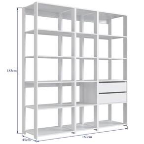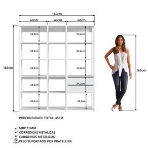 Garantia: 90 dias / Peso: 73,7kgs/ Cor: Branco/ Referência: 7898970136637; Dimensões: 160cm (C) x 45cm (L) x 183cm (A); Material: MDP e MDF; Conteúdo da embalagem: Móvel, ferragens e manual de montagem.