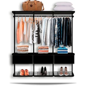 6 *pilhas de roupas dobradas com até 27cm de altura ou em caixa gaveta;
