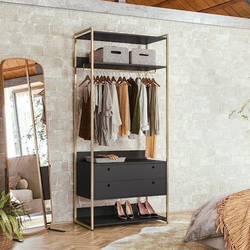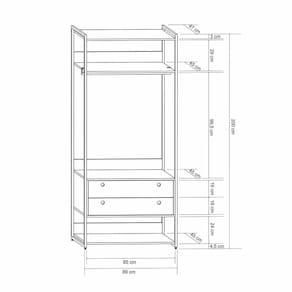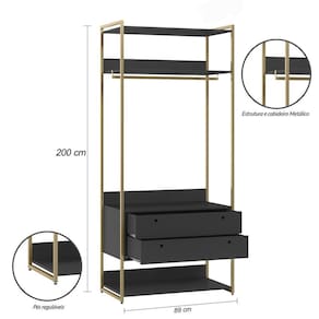 O Closet Ind. Olivar-Módulo 02 é um produto que mostra uma diversidade de materiais, com metal nas laterais e MDF e MDP de 15 mm. Ele possui 4 prateleiras para acomodar objetos ou roupas, um cabideiro de metal, duas gavetas amplas com corrediças metálicas, um detalhe usinado na frente da gaveta para servir como puxador e pés reguláveis. Este produto é ideal para quarto que poderá também juntar-se com outros módulos da Olivar Móveis e montar um Closet maior onde irão acomodar tudo que você precisa. É um produto com design de uma pegada industrial para quem gosta do estilo mais urbano e contemporâneo onde você personaliza seu ambiente deixando-o exclusivo. Acabamento da Gaveta: Pintura UV Acabamento da Prateleira: Pintura UV Ambiente Principal: Quarto Complexidade da Montagem: Baixa: pode ser montado por uma pessoa sozinha Cor: Preto Cor do Produto: Preto Cor Interna: Preto Escala de Brilho: Semi-Brilho Escala de Brilho da Gaveta: Semi-Brilho Escala de Brilho da Prateleira: Semi-Brilho Gaveta com Chave: Não Guarda-Roupa Suporta Até (kg): 25 Itens Inclusos: 1 Módulo Closet, Kit Ferragens e Manual de Montagem Linha ou Coleção: Linha Manual de Montagem e Instalação: https://product-hub-prd.madeiramadeira.com.br/839090/documents/5fed5016-5721-4a8e-a3d2-bc08d7be4677expclosetindolivarmodulo02.pdf Material da Gaveta: MDF/MDP Material da Prateleira: MDP Material do Puxador da Gaveta: MDF Material dos Pés: Plástico Material Principal: MDF/MDP Necessita Montagem: Sim Origem do Produto: Nacional Peso: 41.8 Peso Máximo por Gaveta: 2 Peso Máximo por Prateleira: 5 Possui Cabideiros: 01 Possui Calceiros: Não Possui Espaço para Vestidos Longos: Não Possui Espelho: Não Possui Espelho Interno: Não Possui Ganchos: Não Possui iluminação: Não Possui Organizador de Gaveta: Não Possui Painel de TV: Não Possui Pés: Não Possui Portas: Não Possui Prateleiras: 04 Possui Sapateira: Sim Recomendações de Uso, Manutenção e Limpeza: Pano úmido. Não aplicar lustra móveis. Sapatas Niveladoras: Sim Sistema de Montagem: Parafusos e Minifix. Tipo de Corrediça da Gaveta: Metálica Simples Tipo de Dobradiça/Corrediça da Porta: Metálica Tipo de Gaveta: Externa Tipo de Guarda-Roupa: Closet Tipo de Puxador da Gaveta: Embutido