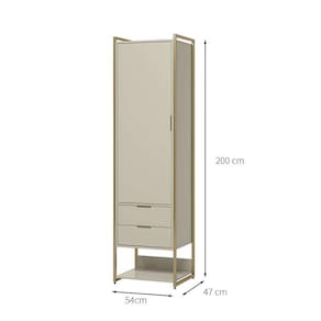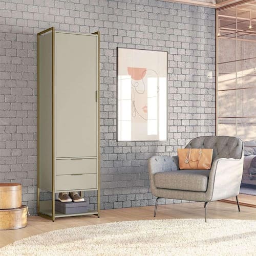 Que tal o Guarda-Roupa Closet Mital? Nada como um closet montado de acordo com nossas necessidades, né? Com o Guarda-Roupa Mital, você pode adquirir os módulos que precisar para montar sua organização ideal - este aqui, por exemplo, tem 2 gavetas e 1 porta com cabideiro para roupas maiores. Moderno e flertando com o estilo industrial, ele tem estrutura em metal dourado que, unida à cor sóbria, torna simples ambientá-lo no quarto ou naquele cômodo reservado para suas peças. É ou não perfeito? :)