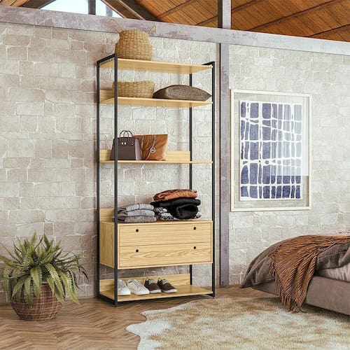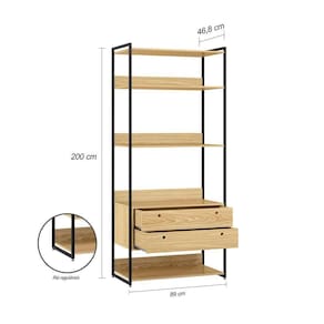 O Closet Estante Ind. Olivar-Módulo 01 é um produto que mostra uma diversidade de materiais, com metal nas laterais e MDF e MDP de 15 mm. Ele possui 5 prateleiras para acomodar objetos ou roupas, duas gavetas amplas com corrediças metálicas, um detalhe usinado na frente da gaveta para servir como puxador e pés reguláveis.Tipo: Closet estante ind.Modelo: Módulo 01Cor: PinusDimensões (AxLxP): 200cm x 89cm x 46,8cmCaracterísticas:Material da estrutura: MDF E MDP 15MMAcabamento: Pintura UVEscala de Brilho: AcetinadoPeso máx suportado: 30kgGarantia: 3 mesesRecomendações de limpeza: Pano úmido. Não aplicar lustra móveis.Necessita montagem: SimQuantidade de pés: 4Tipo de pés: RegulávelQuantidade de gavetas: 2Tipo de corrediça: MetálicaPeso suportado pelas gavetas: 2kgPuxadores: Usinados no MDFQuantidade de prateleiras: 5Tipo de prateleiras: FixasATENÇÃOAS IMAGENS SÃO MERAMENTE ILUSTRATIVAS E PODEM SOFRER VARIAÇÕES DE COR E PEQUENOS DETALHES DE ACORDO COM O SEU MONITOR, ILUMINAÇÃO DO AMBIENTE E ATÉ MESMO A SUA PERCEPÇÃO VISUAL.Guarda Roupa Closet Industrial Solteiro 2 Gavetas - Pinus
