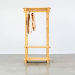 Possui também prateleiras para roupas ou até mesmo calçados.