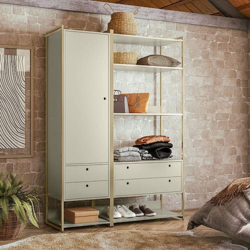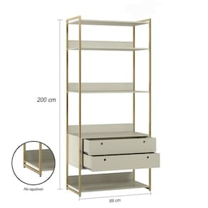 Este é o Conjunto de Closet Ind. Olivar-Módulos 04 e 01, produto que mostra uma diversidade de materiais, com metal nas laterais, MDF e MDP de 15 mm. Ele possui prateleiras para acomodar objetos ou roupas, cabideiro de alumínio, gavetas e portas com corrediças e dobradiças metálicas, tudo com design de uma pegada industrial para quem gosta do estilo mais urbano e contemporâneo onde você personaliza seu ambiente deixando-o exclusivo. Acabamento da Prateleira: Pintura UV Escala de Brilho da Prateleira: Semi-Brilho Possui Cabideiros: 01 Acabamento da Gaveta: Pintura UV Escala de Brilho da Gaveta: Semi-Brilho Material do Puxador da Gaveta: MDF Possui Organizador de Gaveta: Não Acabamento da Porta: Pintura UV Escala de Brilho da Porta: Semi-Brilho Material do Puxador da Porta: MDF Ambiente Principal: Quarto Complexidade da Montagem: Baixa: pode ser montado por uma pessoa sozinha Cor: Off White Cor do Produto: Off White Cor Interna: Off White Escala de Brilho: Semi-Brilho Gaveta com Chave: Não Guarda-Roupa Suporta Até (kg): 55 Itens Inclusos: 2 Módulos Closet, Kit Ferragens e Manual de Montagem Linha ou Coleção: Linha Manual de Montagem e Instalação: https://cdn2.madeiramadeira.com.br/atributo/olivar-moveis/1273313-manual-closet-ind-olivar-conj-04-01.pdf Material da Gaveta: MDF/MDP Material da Porta: MDF Material da Prateleira: MDP Material dos Pés: Plástico Material Principal: MDF/MDP Necessita Montagem: Sim Origem do Produto: Nacional Peso: 90,5 kg Peso Máximo por Gaveta: 2 Peso Máximo por Prateleira: 5 Possui Calceiros: Não Possui Espaço para Vestidos Longos: Sim Possui Espelho: Não Possui Espelho Interno: Não Possui Ganchos: Não Possui iluminação: Não Possui Painel de TV: Não Possui Pés: Não Possui Portas: 01 Possui Prateleiras: 05 Possui Sapateira: Sim Recomendações de Uso, Manutenção e Limpeza: Pano úmido. Não aplicar lustra móveis. Sapatas Niveladoras: Sim Sistema de Montagem: Parafusos e Minifix. Tipo de Corrediça da Gaveta: Metálica Simples Tipo de Dobradiça/Corrediça da Porta: Metálica Tipo de Gaveta: Externa Tipo de Guarda-Roupa: Closet Tipo de Puxador da Gaveta: Embutido Tipo de Puxador da Porta: Embutido