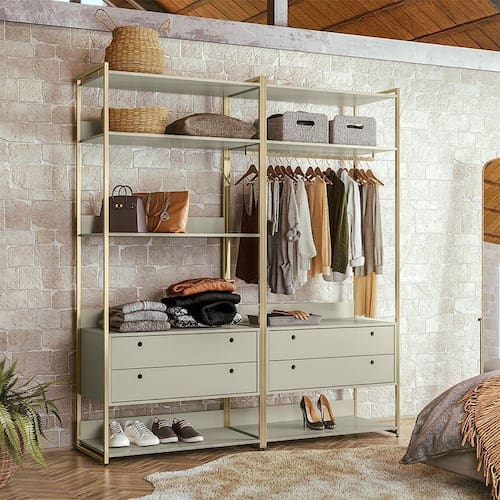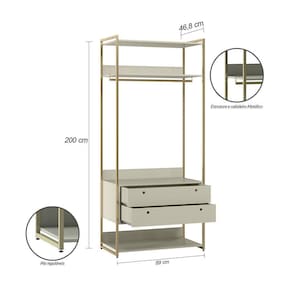 Guarda Roupa Closet Modulado Industrial Quarto Solteiro Olivar Aberto 178cm - Off White - Cor: Off White