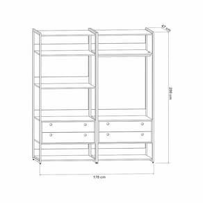 Este é o Conjunto de Closet Ind. Olivar-Módulos 01 e 02, produto que mostra uma diversidade de materiais, com metal nas laterais, MDF e MDP de 15 mm. Ele possui prateleiras para acomodar objetos ou roupas, 1 cabideiro de metal, gavetas com corrediças metálicas, tudo com design de uma pegada industrial para quem gosta do estilo mais urbano e contemporâneo onde você personaliza seu ambiente deixando-o exclusivo.Tipo: Conjunto ClosetModelo: Módulo 01,02Cor: PinusDimensões (AxLxP): 200cm x 178cm x 47cmCaracterísticas:Material da estrutura: MDF E MDP 15MMAcabamento: Pintura UVEscala de Brilho: AcetinadoPeso máx suportado: 55kgGarantia: 3 mesesRecomendações de limpeza: Pano úmido. Não aplicar lustra móveis.Necessita montagem: SimQuantidade de pés: 8Tipo de pés: RegulávelQuantidade de gavetas: 4Tipo de corrediça: MetálicaPeso suportado pelas gavetas: 2kgPuxadores: Usinados no MDFQuantidade de prateleiras: 9Tipo de prateleiras: FixasATENÇÃOAS IMAGENS SÃO MERAMENTE ILUSTRATIVAS E PODEM SOFRER VARIAÇÕES DE COR E PEQUENOS DETALHES DE ACORDO COM O SEU MONITOR, ILUMINAÇÃO DO AMBIENTE E ATÉ MESMO A SUA PERCEPÇÃO VISUAL.Guarda Roupa Closet Modulado Industrial Quarto Solteiro Olivar Aberto 178cm - Pinus