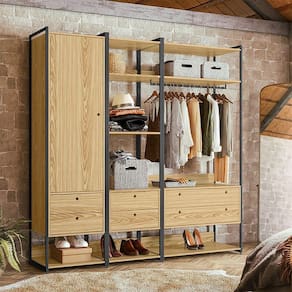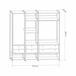Este é o Conjunto de Closet Ind. Olivar-Módulos 04,03 e 02, produto que mostra uma diversidade de materiais, com metal nas laterais, MDF e MDP de 15 mm. Ele possui prateleiras para acomodar objetos ou roupas, 1 cabideiro de metal e 1 cabideiro de alumínio, gavetas e portas com corrediças e dobradiças metálicas, tudo com design de uma pegada industrial para quem gosta do estilo mais urbano e contemporâneo onde você personaliza seu ambiente deixando-o exclusivo.Tipo: Conjunto ClosetModelo: Módulo 04,03,02Cor: PinusDimensões (AxLxP): 200cm x 197cm x 47cmCaracterísticas:Material da estrutura: MDF E MDP 15MMAcabamento: Pintura UVEscala de Brilho: AcetinadoPeso máx suportado: 55kgGarantia: 3 mesesRecomendações de limpeza: Pano úmido. Não aplicar lustra móveis.Necessita montagem: SimQuantidade de pés: 12Tipo de pés: RegulávelQuantidade de gavetas: 6Tipo de corrediça: MetálicaPeso suportado pelas gavetas: 2kgPuxadores: Usinados no MDFQuantidade de portas: 1Tipo de portas: RotaçãoQuantidade de prateleiras: 11Tipo de prateleiras: FixasATENÇÃOAS IMAGENS SÃO MERAMENTE ILUSTRATIVAS E PODEM SOFRER VARIAÇÕES DE COR E PEQUENOS DETALHES DE ACORDO COM O SEU MONITOR, ILUMINAÇÃO DO AMBIENTE E ATÉ MESMO A SUA PERCEPÇÃO VISUAL.Guarda Roupa Closet Modulado Industrial Solteiro Olivar 197cm - Pinus
