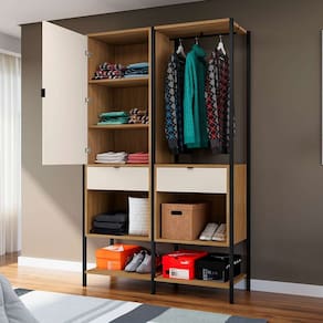 que tal o guarda-roupa closet maverick? se você está em busca de uma solução moderna e sofisticada para o quarto, o guarda-roupa closet maverick é a escolha perfeita. este móvel une o conceito aberto de um closet à decoração sofisticada, criando um ambiente elegante e prático. com design inovador, ele permite que suas roupas e acessórios estejam sempre à vista, facilitando a escolha das peças e a organização do espaço - além disso, o estilo aberto oferece ventilação adequada para as roupas. estruturado em aço, o móvel traz boa durabilidade e um visual requintado para sua casa dos sonhos. Marca: Modern