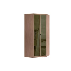 2 portas de bater com vidro Reflecta, que oferecem um visual sofisticado e espelhado, permitindo uma leve transparência para o interior do móvel.