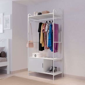 que tal o guarda-roupa closet oásis?com design contemporâneo e seguindo a tendência closet, o guarda-roupa oásis é perfeito para quem busca modernidade e pde. além de seguir a tendência aberta, ele tem também uma porta que te permite guardar aqueles itens que nem sempre precisam estar à mostra. além disso, a estrutura em aço e mdf garante durabilidade e resistência, destacando-se também pelos detalhes delicados, como o formato arredondado no topo. Marca: Modern