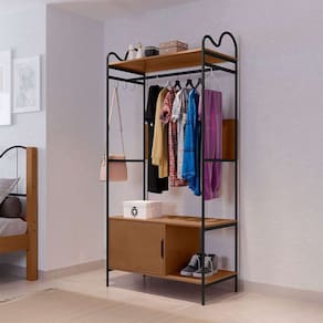 que tal o guarda-roupa closet oásis?com design contemporâneo e seguindo a tendência closet, o guarda-roupa oásis é perfeito para quem busca modernidade e pde. além de seguir a tendência aberta, ele tem também uma porta que te permite guardar aqueles itens que nem sempre precisam estar à mostra. além disso, a estrutura em aço e mdf garante durabilidade e resistência, destacando-se também pelos detalhes delicados, como o formato arredondado no topo.