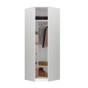 O Roupeiro Closet foi projetado com 236cm de altura para proporcionar uma proximidade ao teto, facilitando o fechamento superior caso seja de interesse do consumidor. Esta linha possui modulações para montar seu ambiente closet da forma que desejar, adequando-se ao seu espaço. Este módulo é sugerido para aproveitamento do canto do cômodo, contém 1 maleiro, 1 cabideiro e 5 prateleiras, distribuídos internamente acomodando roupas e objetos com praticidade.